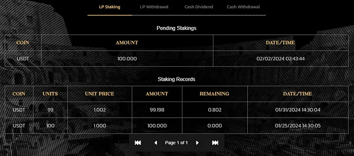 Deposit: Upon acceptance of a deposit request, the specified amount is seamlessly transferred to the pool contract. Any remaining funds, after processing during the subsequent dividend, find their way back to the LP via the system vault contract.