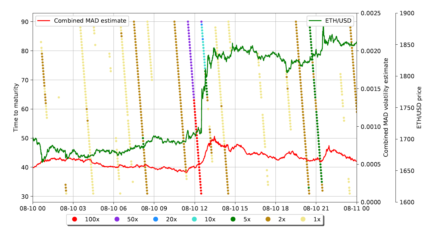 The data shows that during the period both the price and the volatility of the ETH changed in a wide range. There were periods of downward and upward trends as well as periods when the price was fairly stable.